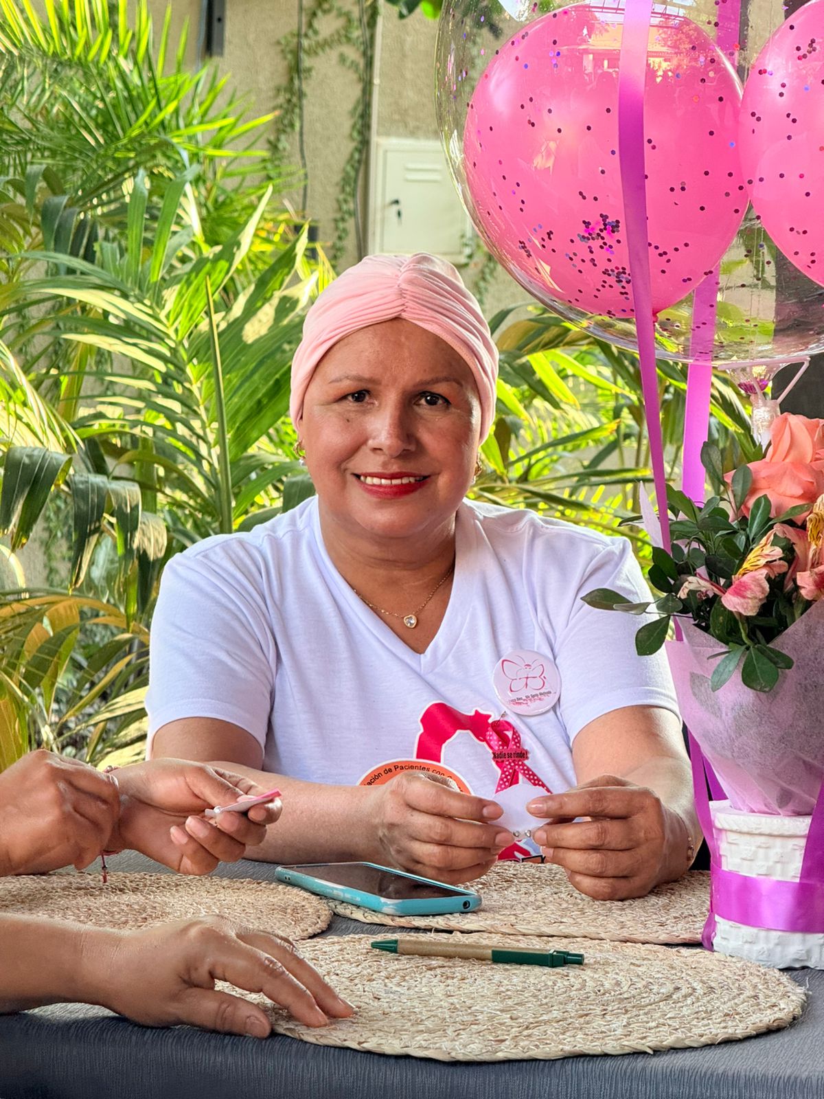 El encuentro también contó con la participación de Cynthia Romero, quien ofreció una inspiradora charla motivacional; Carolina Vélez, con recomendaciones sobre alimentación saludable durante el tratamiento; presentaciones musicales como la de José Melgar y baile a cargo de Fama Machine, que llenaron de alegría y emoción el salón. Uno de los momentos más simbólicos fue la donación de turbantes, coordinada por Érika Peinado, un gesto de solidaridad y amor hacia las mujeres presentes.