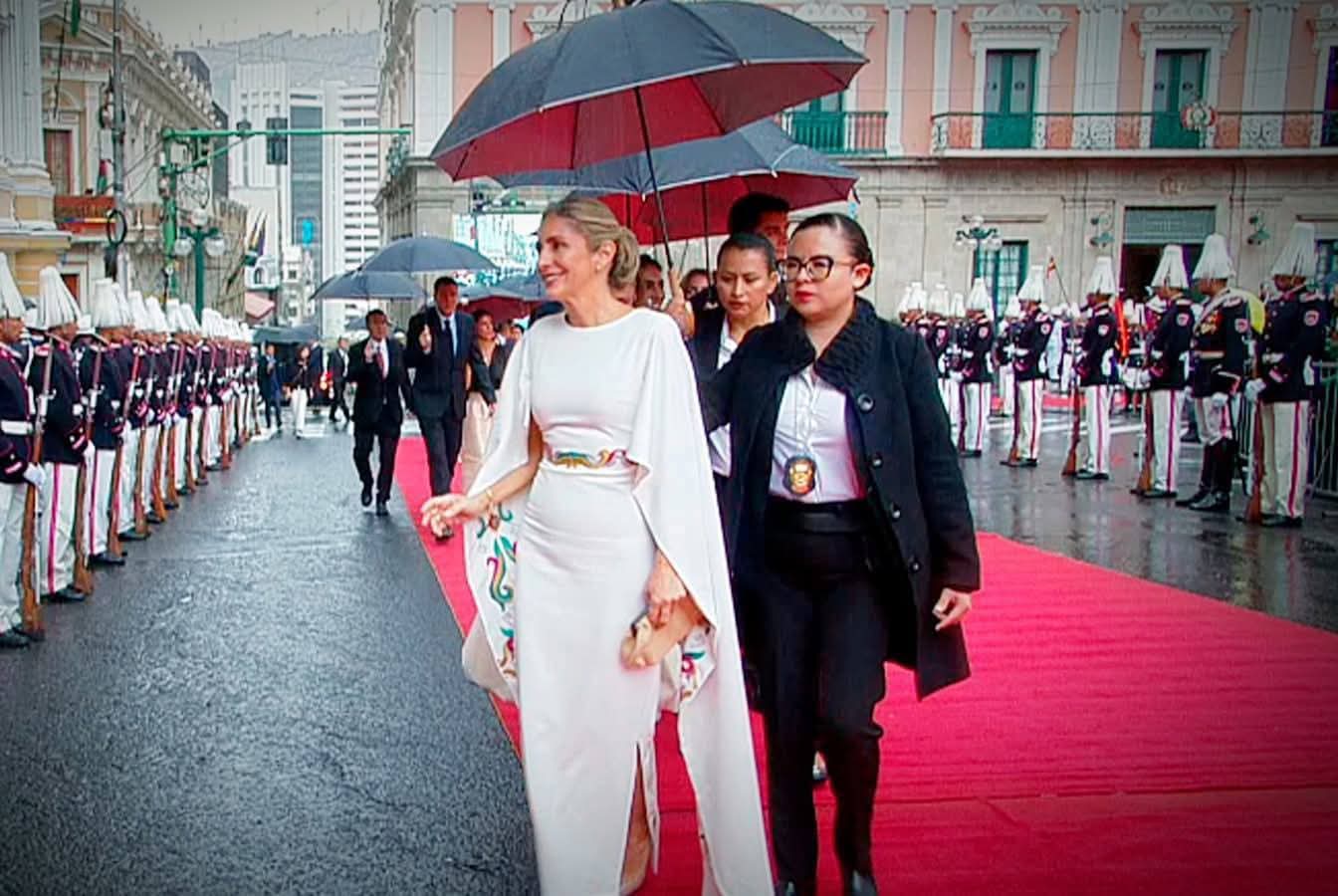 Su presencia destacó por la elegancia y el simbolismo de su atuendo, una creación confeccionada por manos tarijeñas que reflejó la identidad, el talento y la riqueza cultural del sur del país. Con ese gesto, la primera dama rindió homenaje a sus raíces y al trabajo artesanal boliviano, llevando consigo un mensaje de orgullo nacional y de reconocimiento al arte hecho en Bolivia.